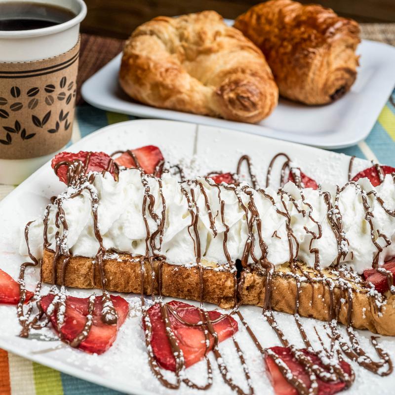 Strawberry, banana, Nutella, whipped cream | Create your own: +$0.90 per ingredient: Brown Sugar, Whipped Cream, Honey, Nutella, Marshmallow, Peanut Butter, Lemon Juice, Melted Chocolate, Caramelized Apples, Banana, Almond-Strawberry, Banana, Graham Crackers, Cinnamon