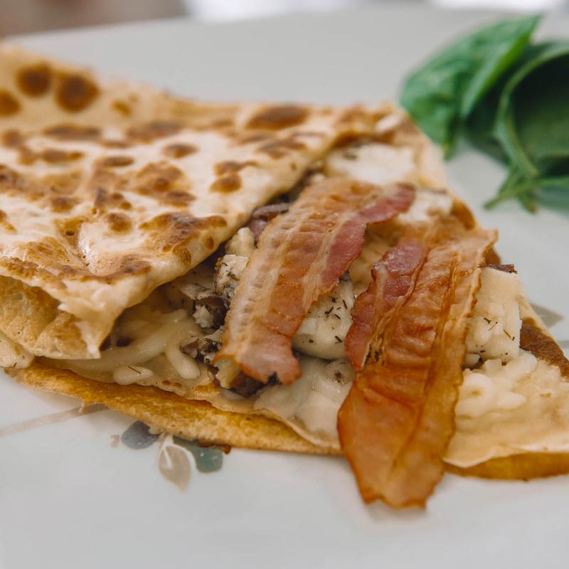 Make Your Own Crêpe | $0.80 per ingredients • Mozzarella, Monterey Jack, Cheddar, Ham, Bacon, Tomato, Spinach, Red Onion, Potato, Turkey, Goat Cheese, Caramelized Onion • Egg (+$1.00) | Ratatouille (+$1.70) | Salmon (+$1.90) | Marinated Chicken (+$1.50) | Ground Beef (+$2.00) | Brie (+$0.90) | Leeks (+$1.00)